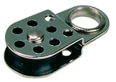 Flush-mounted pulley with aluminum sheave – ball bearings in plastic/stainless steel cage.