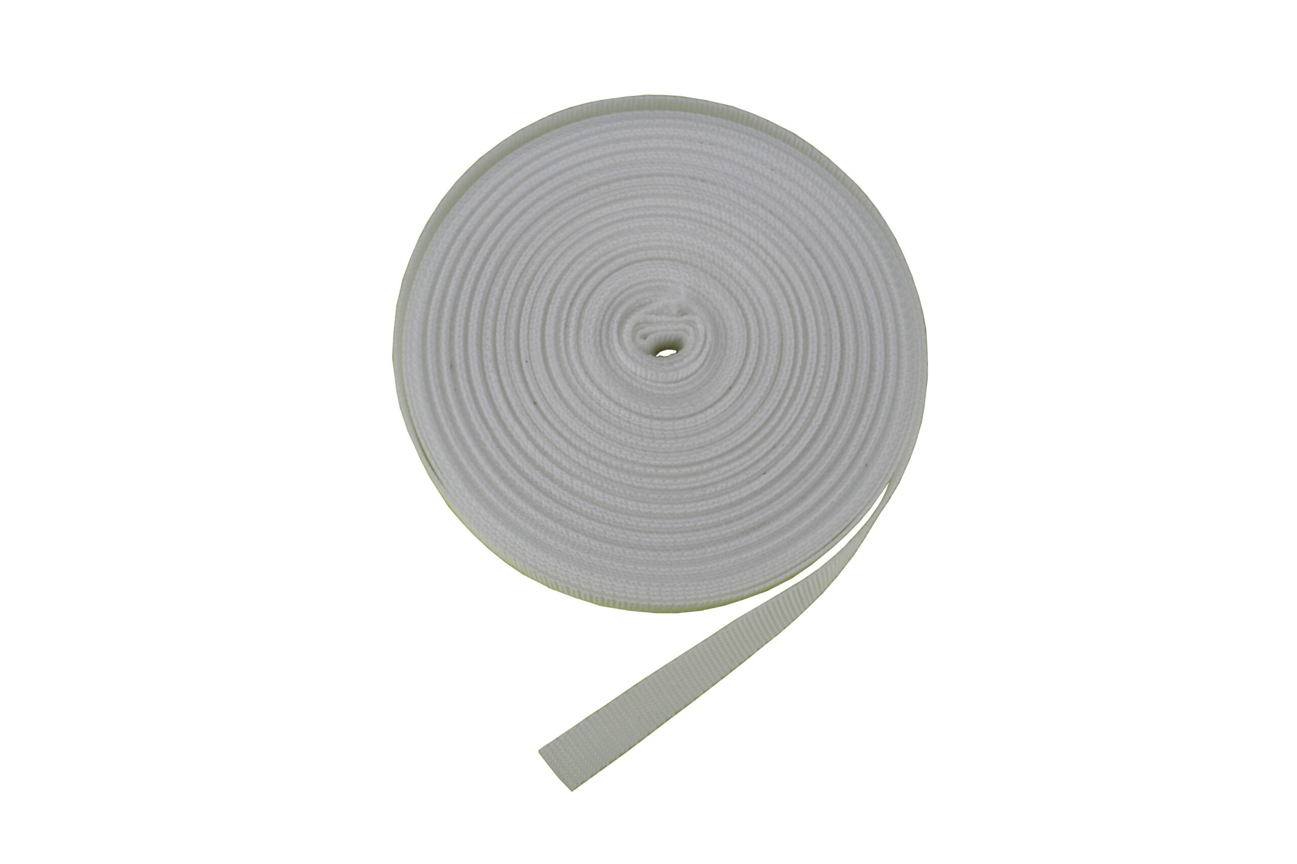 Sangle polypropylene blanche largeur 20mm vendue au mètre linéaire. Sert souvent pour sangle de bout de latte forcée.
