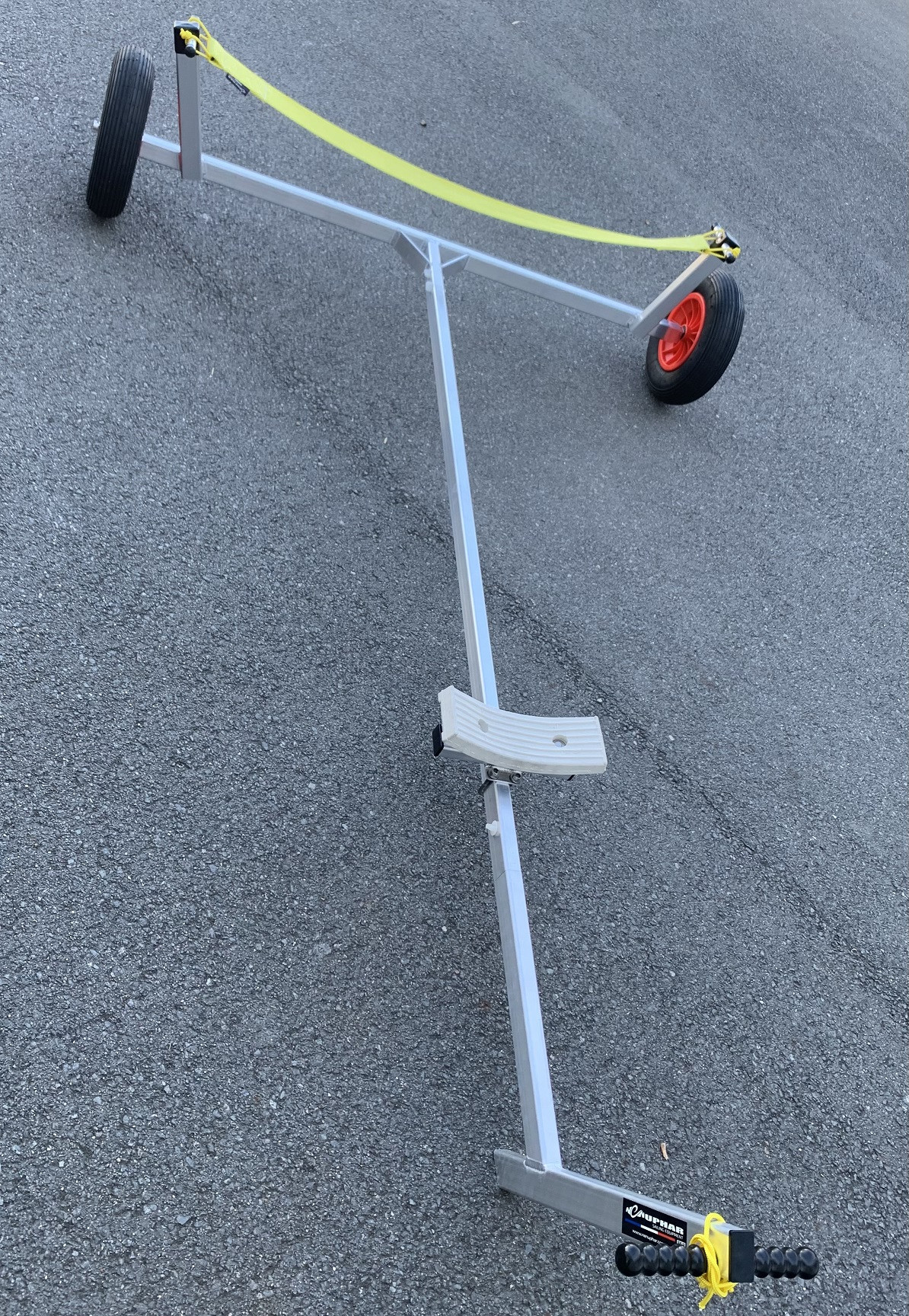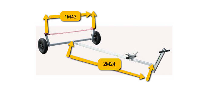 Launching trolley for Laser Pico, Moth Europe, RS Feva, and any boat up to 3.70 m in length and 95 kg in weight.
