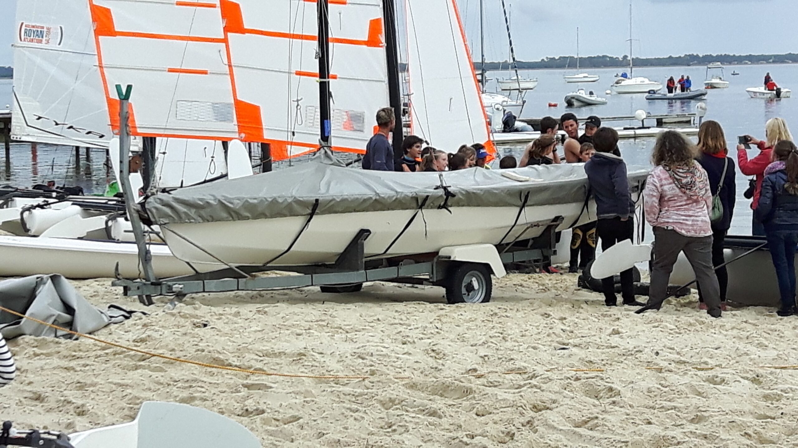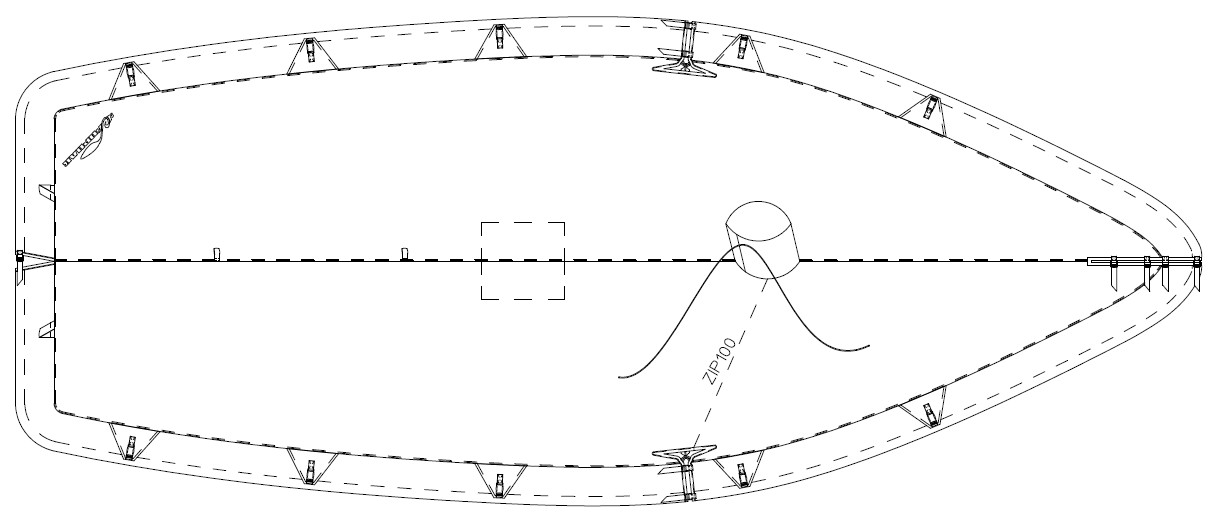 Mast, chainplate, and forestay openings to allow the cover to be installed on a rigged boat.