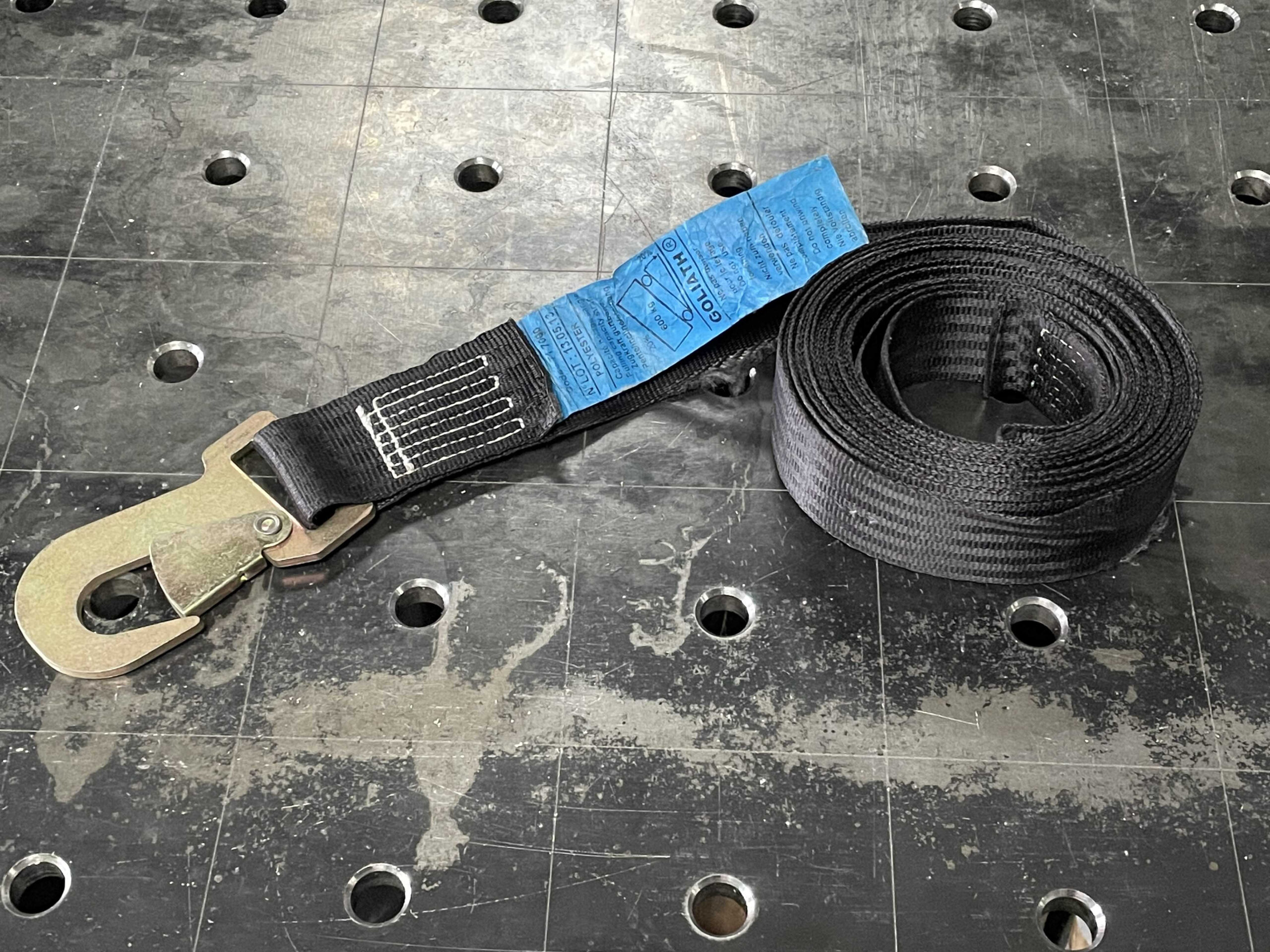 7.5 m long, 48 mm wide strap with hook.