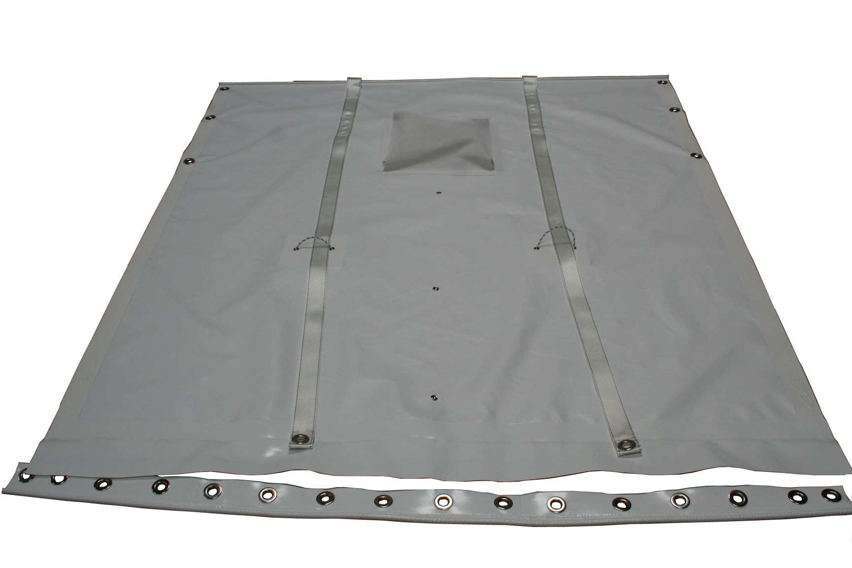 Ce trampoline est conçu pour une résistance élevée et une utilisation intensive. Fabriqué en forte bâche polyester en finition Antigliss ou grain cuir. Les oeilletséventuels sont à dents et toujours posés avec un renfort en sangle. Poche en filet de rangement.