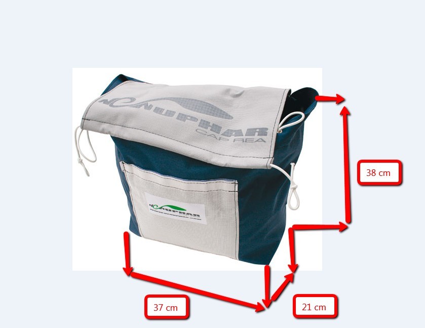 Double poche avec passage de mât au milieu. Fond en filet pour laisser passer l’eau.