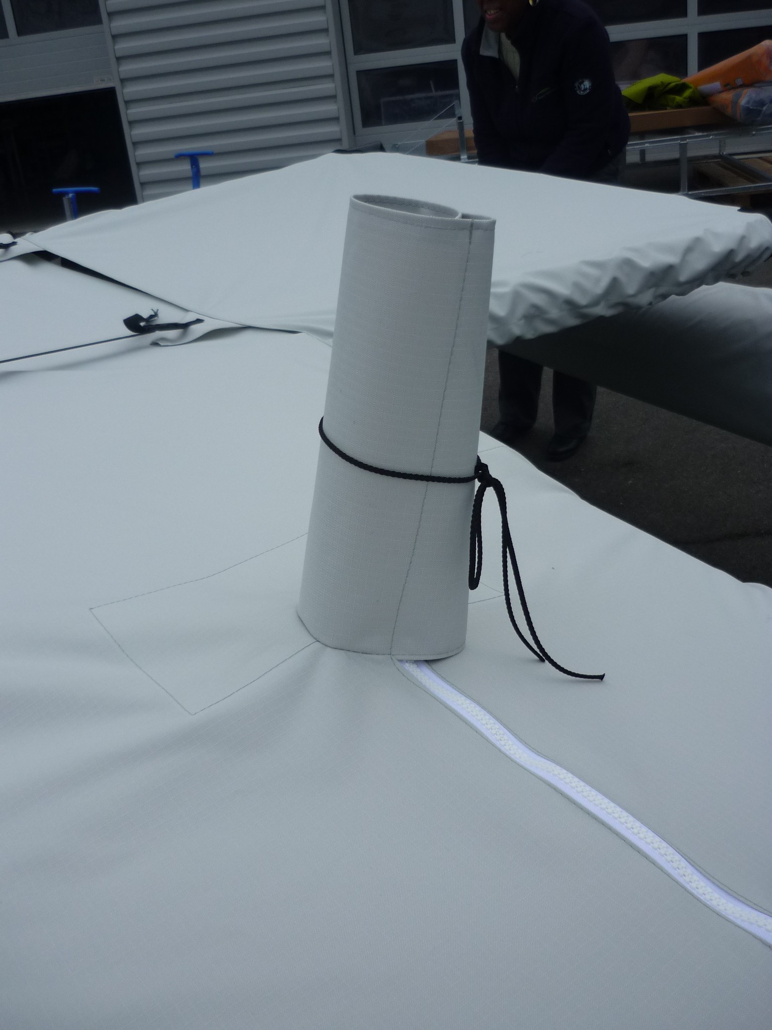 1 taud dessus coque centrale prenant l’étrave.